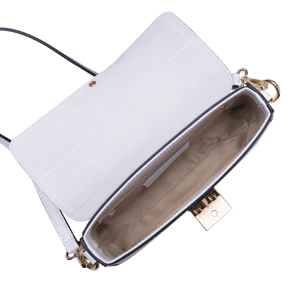 Viviana este o geantă mică și elegantă din piele fermă palmelatto , cu o formă frumoasă care oferă o notă exclusivă. Geanta Viviana poate fi purtată ca un clutch sau cu una dintre cele două curele incluse – una scurtă pentru mână și una lungă.