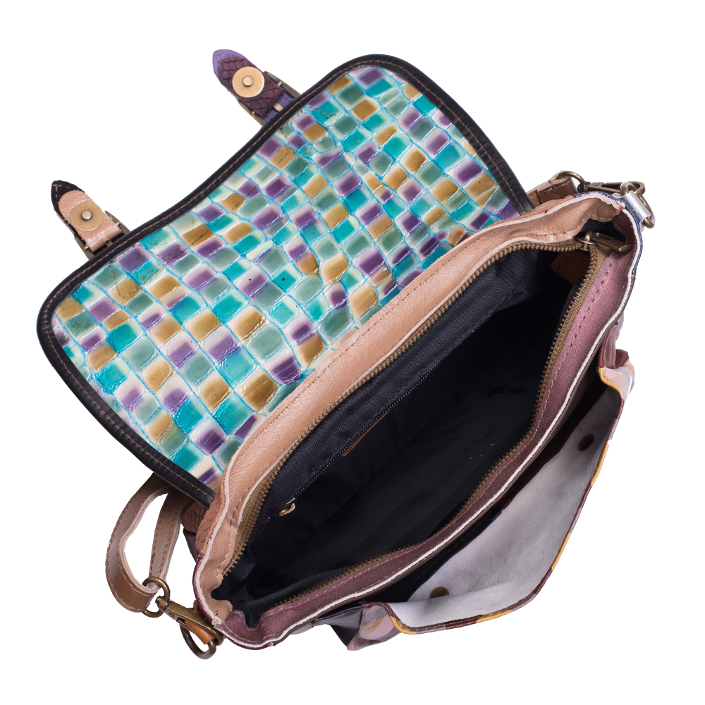GEANTA ZEVO DAMA PIELE NATURALA MULTICOLORA TIP POSTAS DIMENSIUNE MEDIE COLECTIA PATCHWORK AURA 02